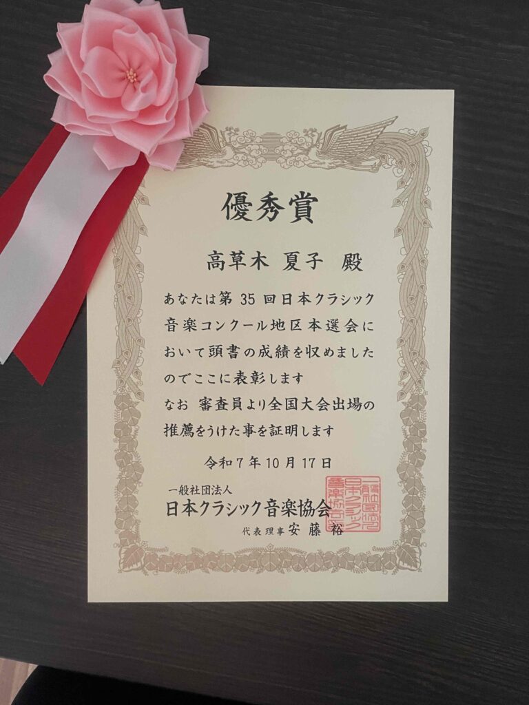 ◆東京国際声楽コンクール優秀賞受賞