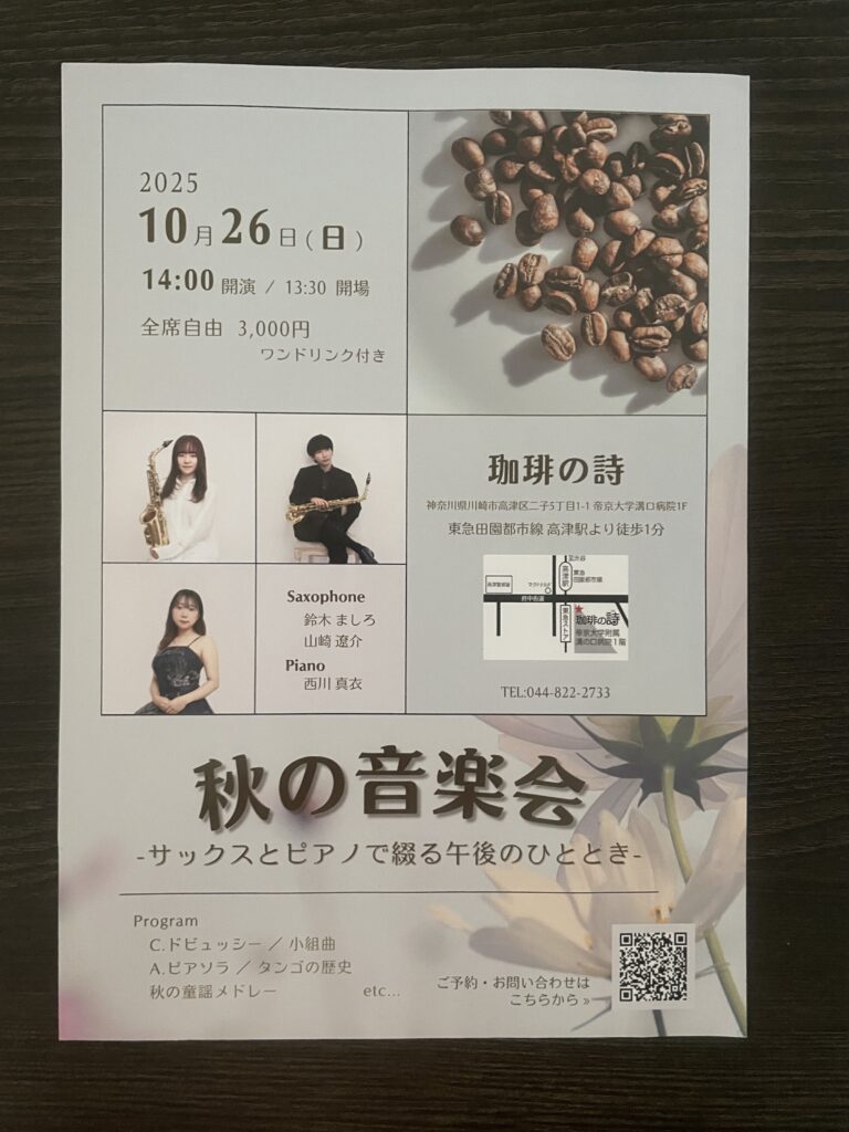 秋の音楽会~サックスとピアノで綴る午後のひととき~に