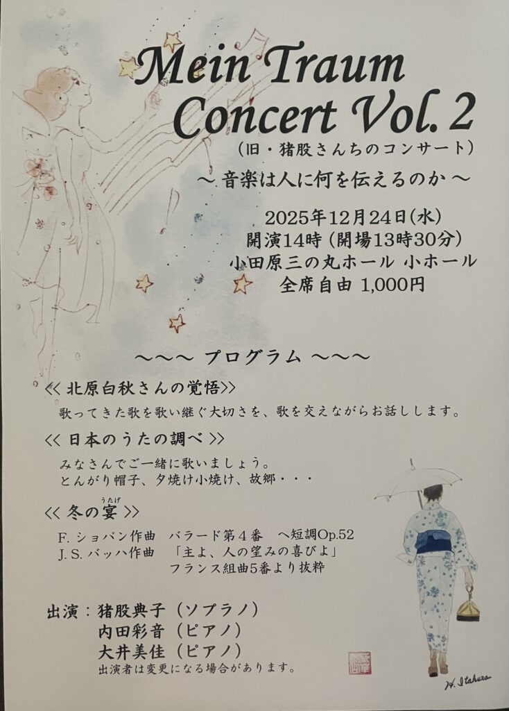 2023年春まで教室の講師だった五十嵐美和先生(現在仙台在住)が3月8日にソロコンサート、