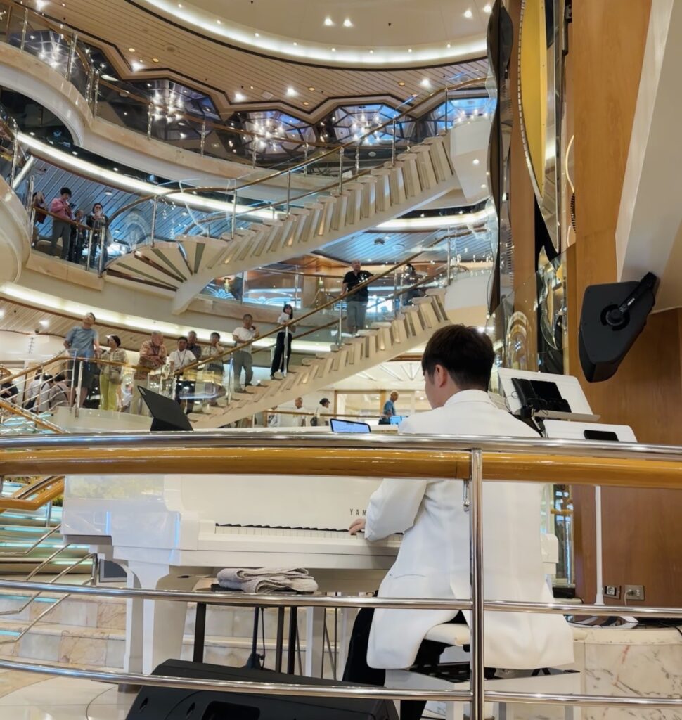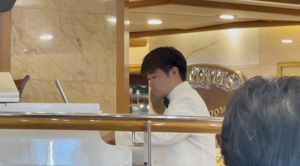 現在、世界一周の船旅パシフィックワールド号(横浜港発) 専属ピアニストとして活躍中
